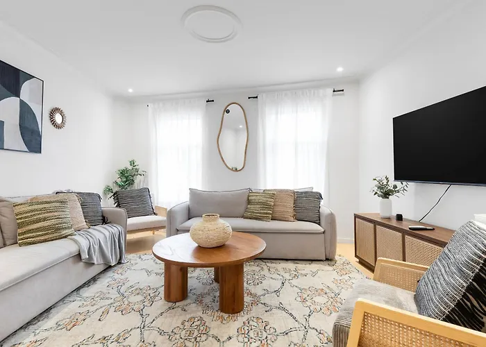 Ces propriétés Appartement Boho Luxe 2-Floor Retreat Sleeps 6 Private Patio comprend un patio, un balcon et un coin salon avec une climatisation pour un plus grand confort. L'appartement dispose de 1 chambre à coucher. Pour assurer votre confort, une toilette séparée et une douche sont fournis dans cet établissement. Un sèche-cheveux et des serviettes sont disponibles.